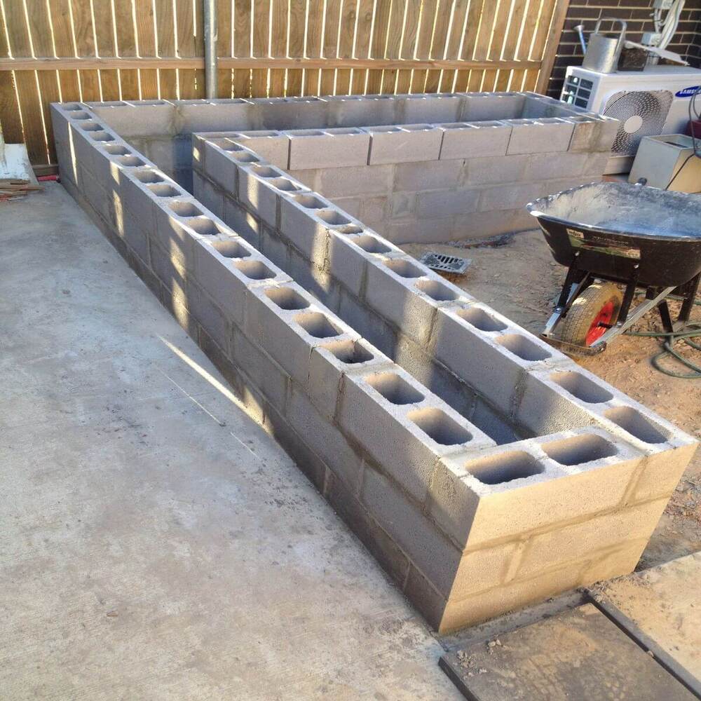 • استخدم البلك والأسمنت لبناء جميع الجدران المحيطة بـ حوض الزرع.